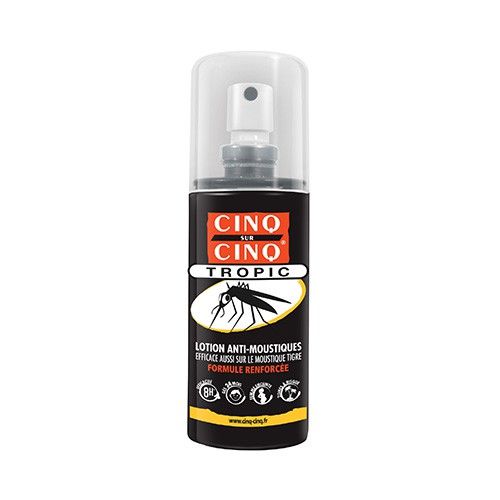 Le Spray 75ML Tropic CINQ SUR CINQ® est préconisé dans les régions infestées et les zones à risque de paludisme. Il aide à lutter contre 5 espèces d'insectes européens et tropicaux : moustiques, guêpes, abeilles, tiques et taons.