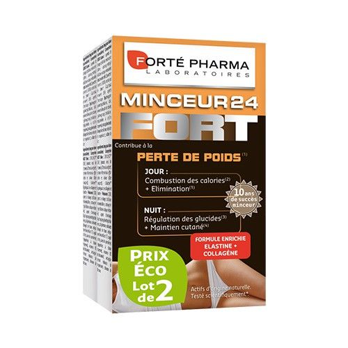 Minceur 24 Fort est un complément alimentaire destiné à perdre du poids(1) en accompagnement de mesures diététiques et d’une hygiène alimentaire contrôlée. Prendre 1 comprimé JOUR blanc avant le petit-déjeuner et 1 comprimé NUIT rose avant le dîner, avec un verre d’eau. Prévoir idéalement une utilisation d’un mois, à renouveler.