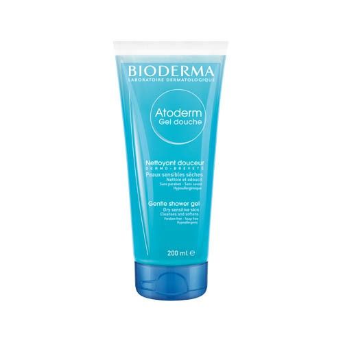 Le gel douche Atoderm 200 ml de Bioderma nettoie en douceur et respecte l’équilibre cutané.