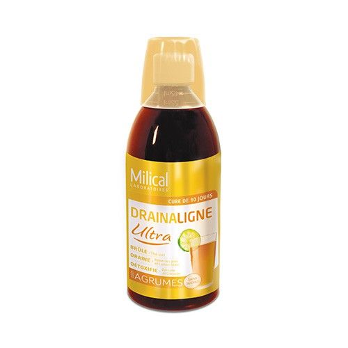 La préparation Drainaligne ultra agrumes Milical brûle les graisses, draine et detoxifie.