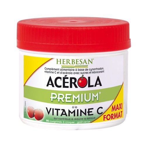 Ce complément alimentaire à base de cynorhodon, de vitamine C et d'acérola avec sucres et édulcorant est issu de la recherche HERBESAN®: l'acérola est un petit fruit découvert en Amérique du Sud, communément appelé Cerise des Antilles. Il possède une chair juteuse et acidulée. Le cynorhodon est le fruit rouge pulpeux de l'églantier.