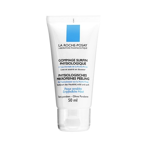 Le GOMMAGE SURFIN PHYSIOLOGIQUE de La Roche-Posay lisse et assainit en douceur les peaux sensibles.