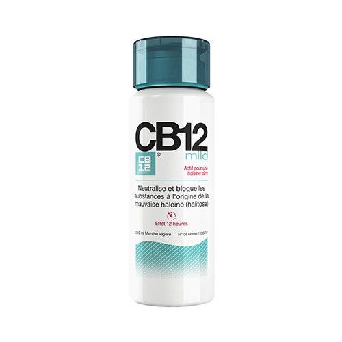 CB12 Mild, à base de menthe légère, élimine la mauvaise haleine et prévient sa réapparition en neutralisant les composés sulfurés volatils dans la bouche. L'effet de CB12 Mild procure une haleine sans odeur pendant 12 heures.