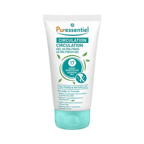 Le Gel Ultra-Frais Circulation aux 17 Huiles essentielles de Puressentiel aide à alléger et soulager les sensations de jambes lourdes.