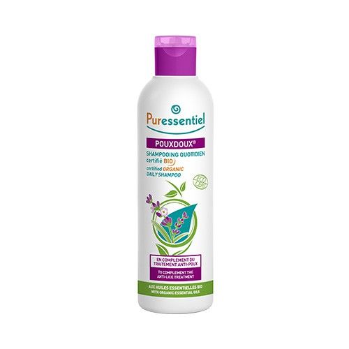 En complément de la lotion Puressentiel Anti-poux, le Shampoing quotidien Pouxdoux® de Puressentiel, aux huiles essentielles bio, s'utilise pour assainir le cuir chevelu, et aider à décoller les lentes et poux morts.