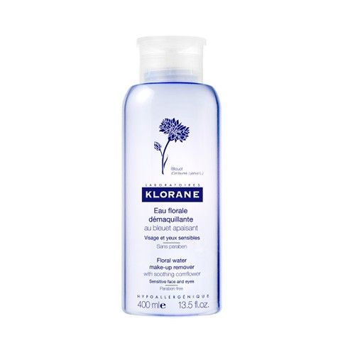 Pour le soin des yeux, les Laboratoires Klorane ont sélectionné l'eau florale de bleuet aux propriétés apaisantes et décongestionnantes, en contrôlant chaque étape de son développement. Spécialement formulée pour les yeux sensibles et porteurs de lentilles, l'eau démaquillante apaisante au bleuet Klorane, sans parfum, sans paraben et sans alcool, élimine délicatement toute trace de maquillage du visage, des lèvres et des yeux, laissant la peau nette et fraîche.