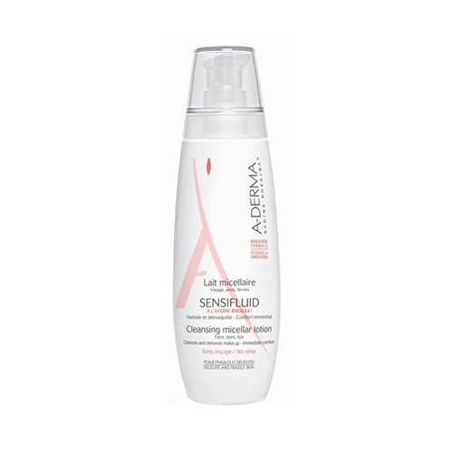 Le Lait Micellaire Sensifluid A-Derma est un soin adapté aux peaux fragiles et délicates, sans rinçage. Votre peau bénéficie d'un maillage dynamique à double bénéfice, au coeur d'une texture lait : grâce à l'innovation Rhea-Fluid®, au contact avec la peau, le lait libère des micelles actives hydra-nettoyantes 100% végétales. Vous profitez à l'application un toucher très doux et ultra-glissant, puis le lait se transforme en eau.