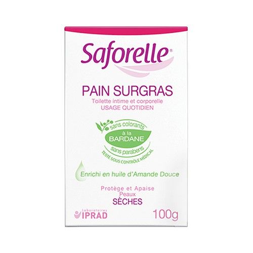 Le Pain Surgras Saforelle enrichi en huile d’amande douce nettoie en douceur sans dessécher et calme irritations et sensations d’inconfort.
