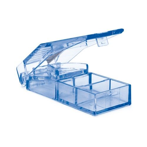 Permet de casser les comprimés en plusieurs morceaux et de les stocker dans les deux compartiments du bas,
