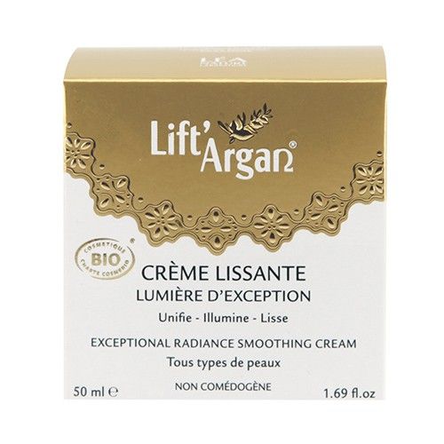 Adaptée à tous les types de peaux, la Crème lissante lumière d'exception Lift'Argan à la texture soyeuse est un soin triple actions :