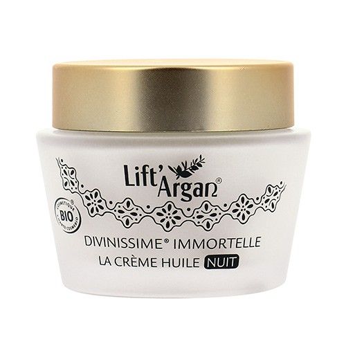 Concentrée en micro-perles d’huiles végétales précieuses, la Crème Huile Nuit Divinissime® Immortelle Lift'Argan fond dans la peau pour une action ciblée régénérante et un confort infini du soir au matin.